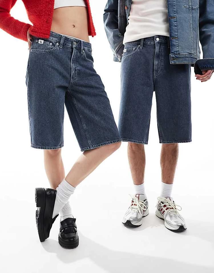 Calvin Klein Jeans 90s Straight Skater Shorts In Grey Wash – ASOS Exclusive For Unisex Grey Denim