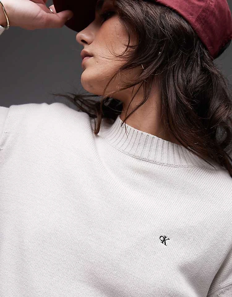 Calvin Klein Jeans Cotton Monogram Jumper In Moonbeam For Women