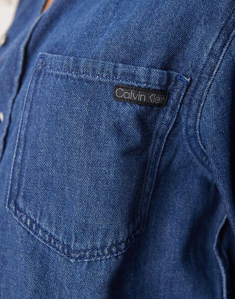 Calvin Klein Jeans Cropped Denim Dad Shirt In Denim Medium For Women