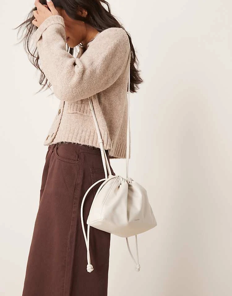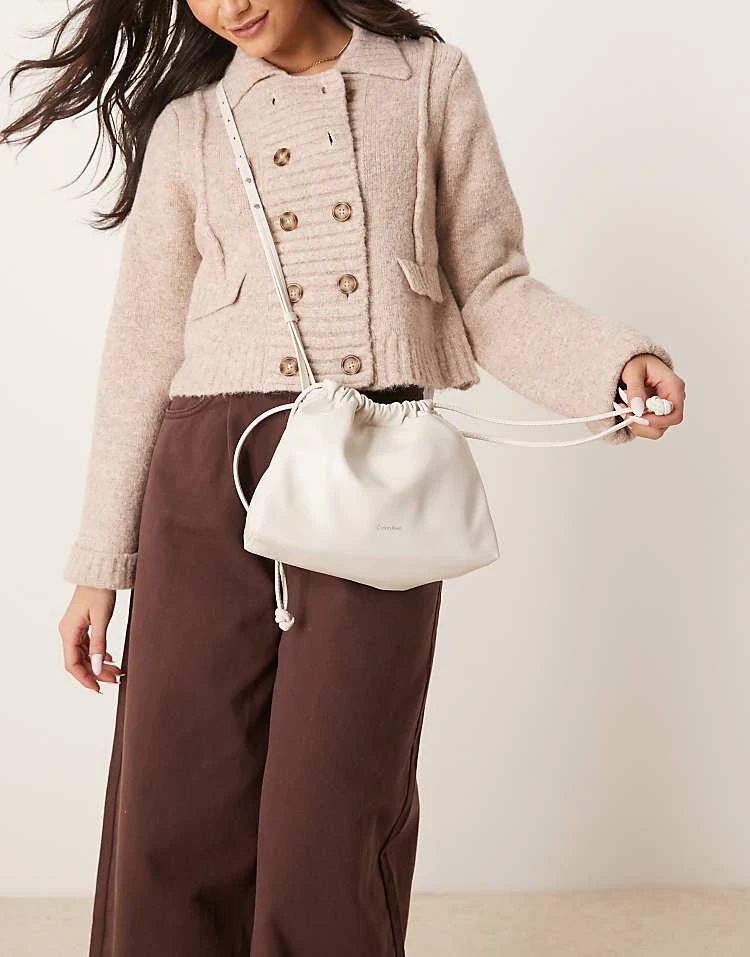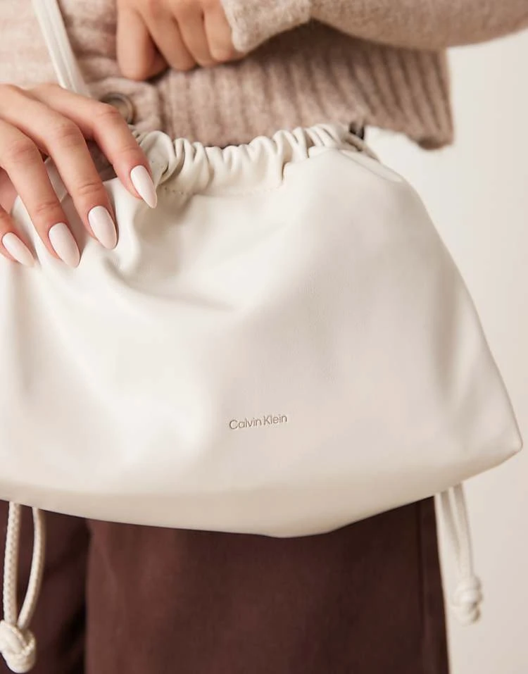 Calvin Klein Jeans Drawstring Crossbody Bag In Off White For Women Chalk
