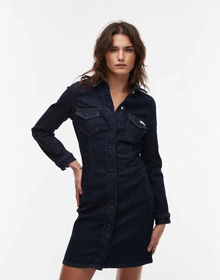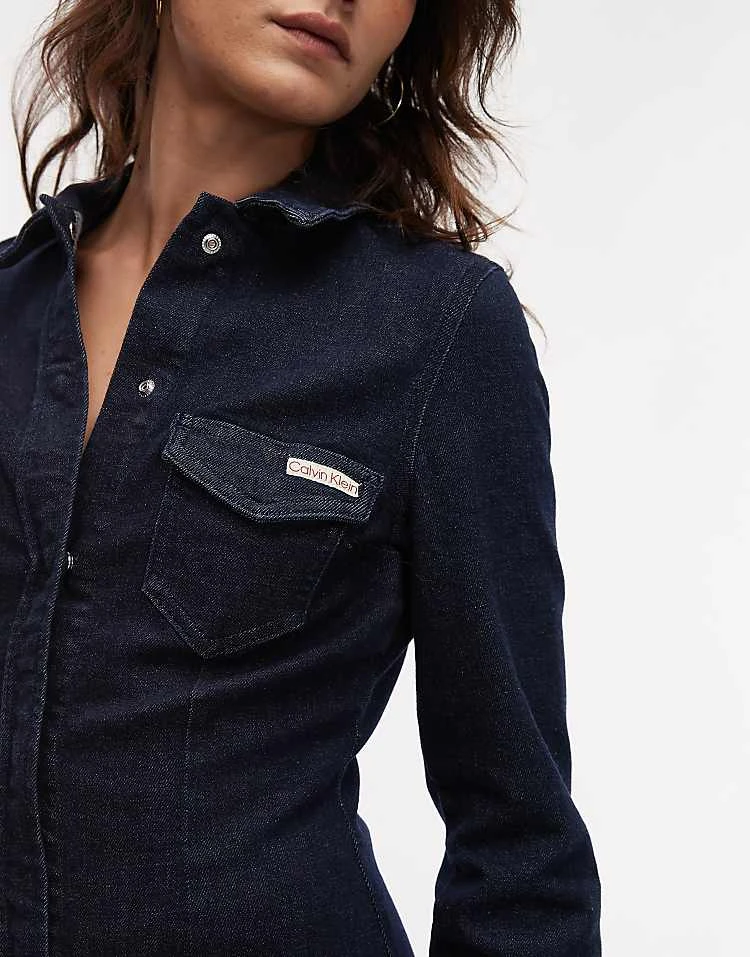 Calvin Klein Jeans Fitted Denim Shirt Dress In Denim Rinse For Women
