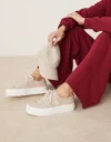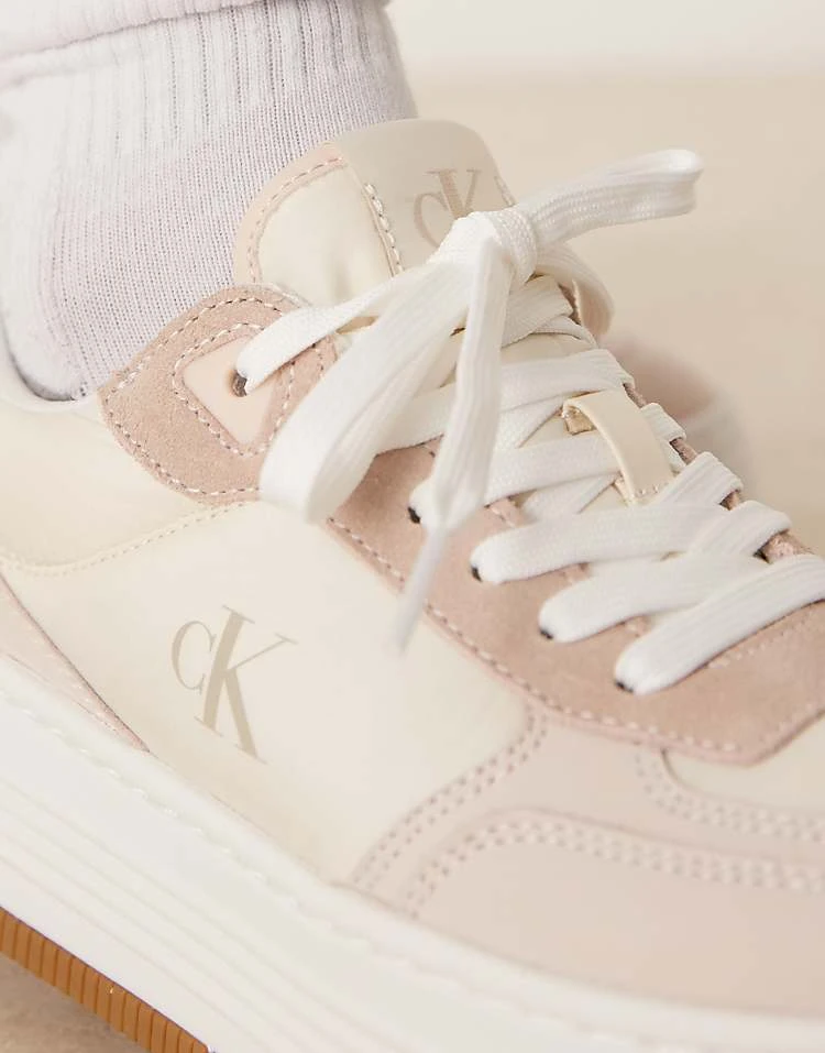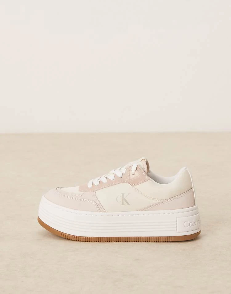 Calvin Klein Jeans Flatform Trainers In Off White With Gum Sole For Women Creamy White/ Pink