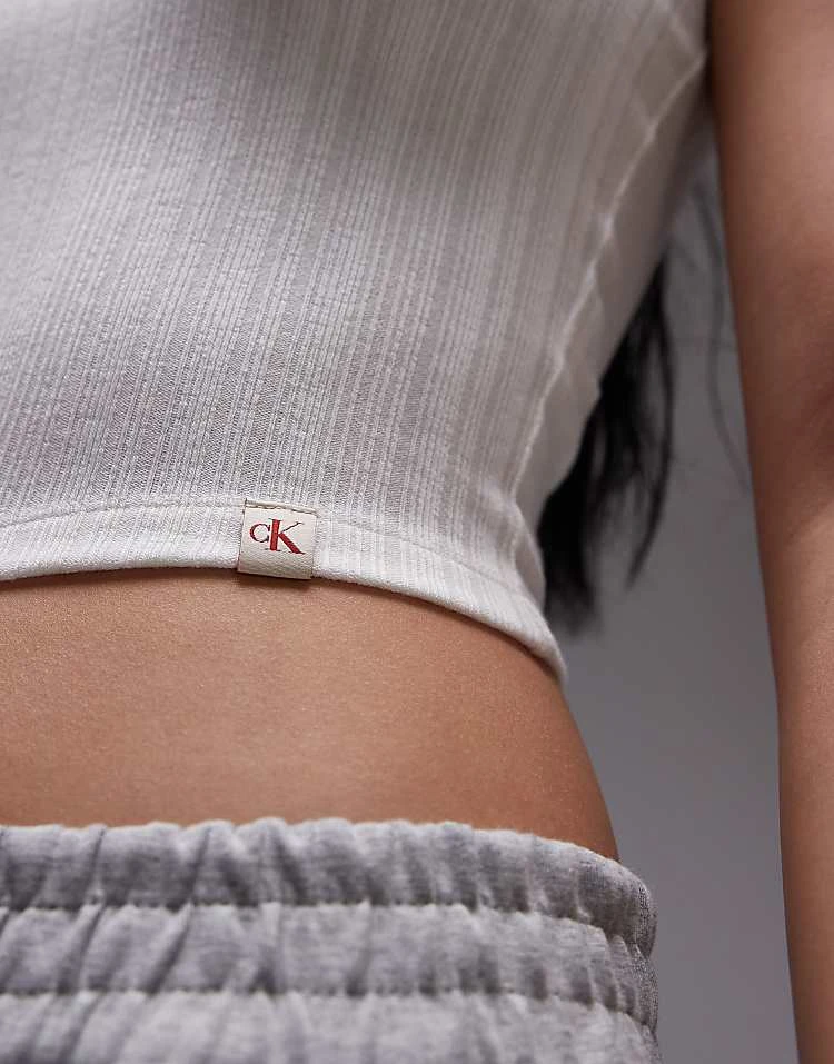Calvin Klein Jeans High Neck Rib Top In White For Women Ivory