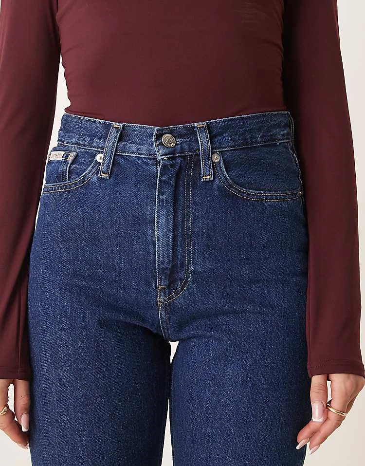 Calvin Klein Jeans High Rise Straight Jeans In Dark Wash For Women Denim Dark