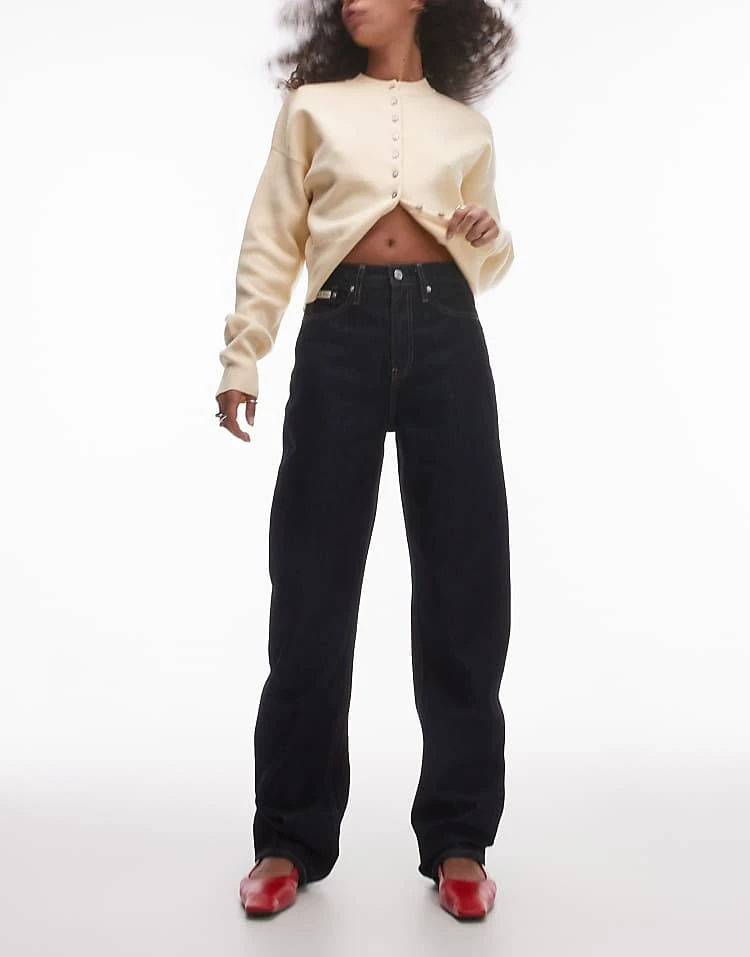 Calvin Klein Jeans High Rise Straight Leg Jeans In Indigo Denim For Women Denim Dark