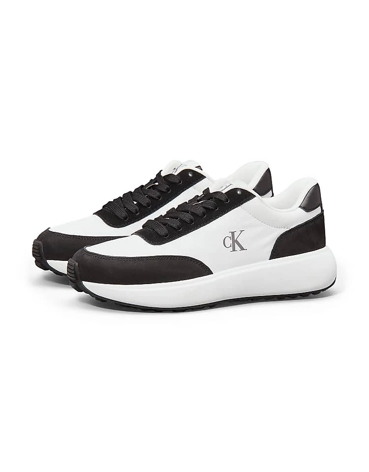 Calvin Klein Jeans Leather Trainers In Bright White/black For Women