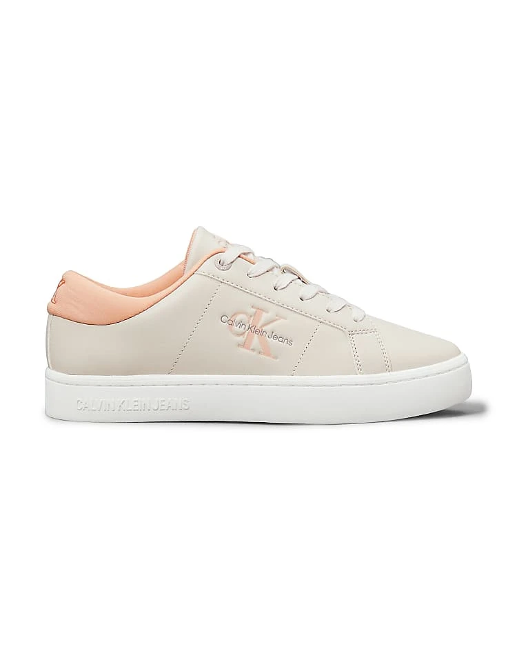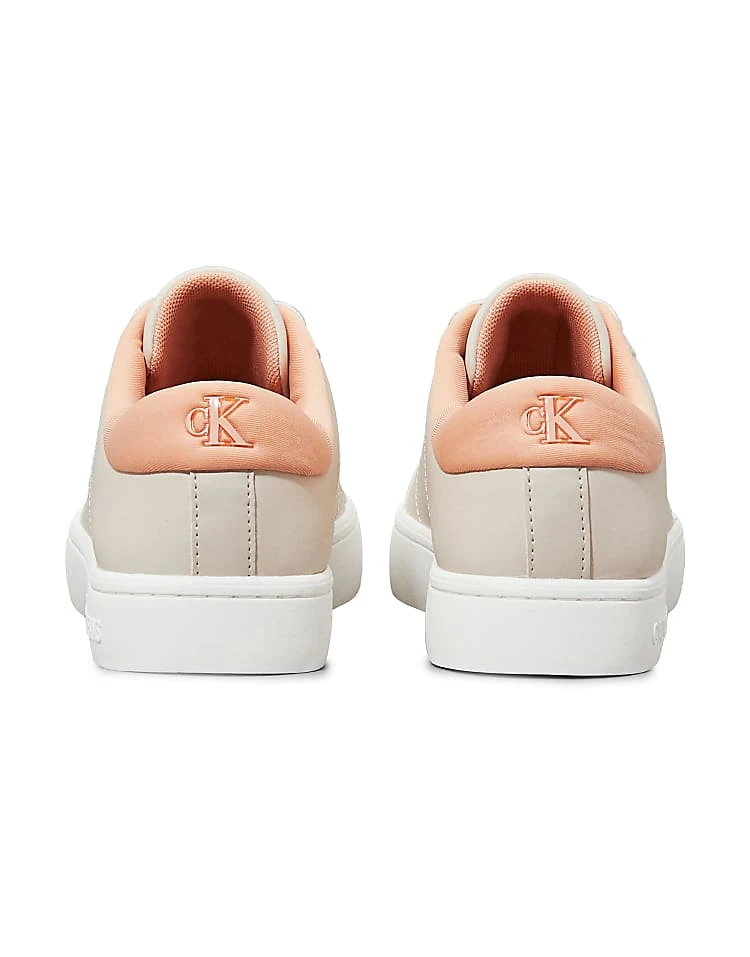 Calvin Klein Jeans Leather Trainers In Eggshell And Coral For Women Egghsell/dusty Coral