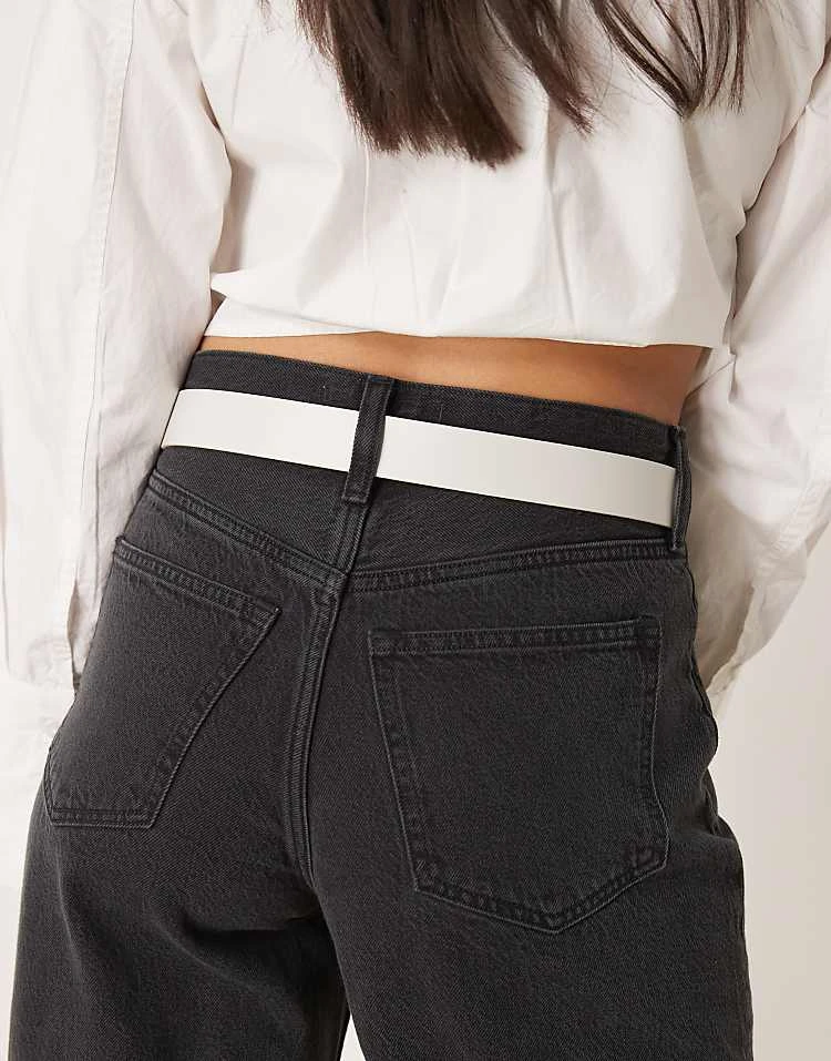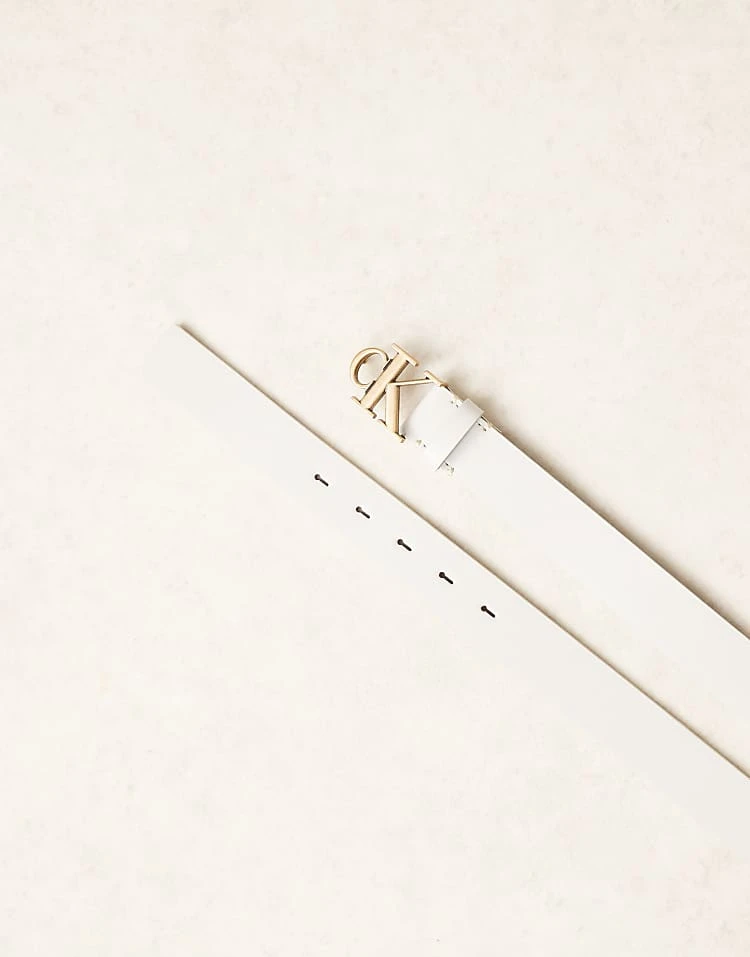 Calvin Klein Jeans Logo Buckle Belt In White For Women Silver Birch/tumbl