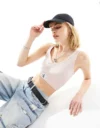 Calvin Klein Jeans Logo Elastic Strappy Top In White For Women Bright White