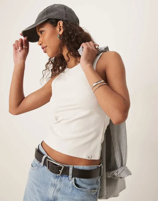 Calvin Klein Jeans Milano Jersey Tank Top In Chalk For Women