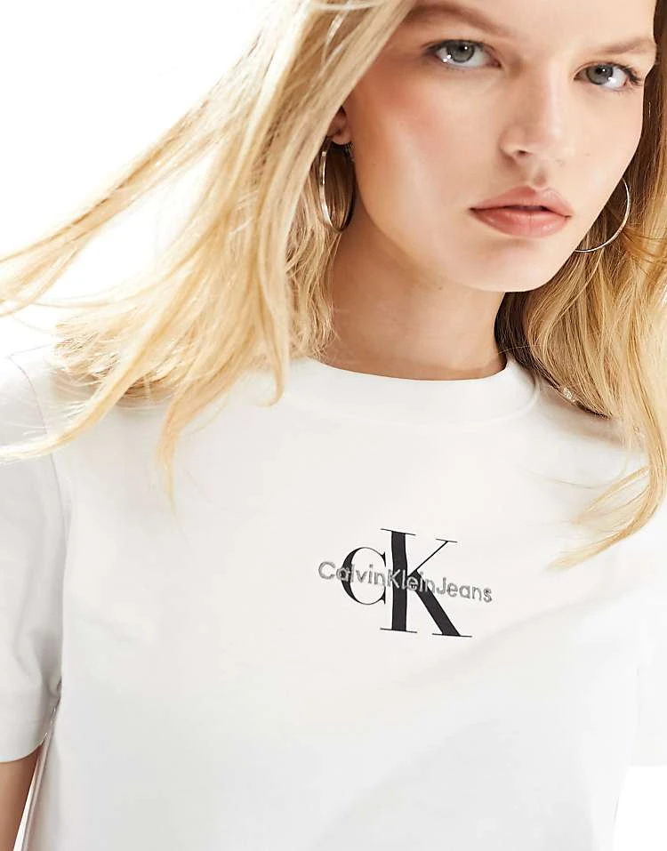 Calvin Klein Jeans Monologo Baby T-shirt In White For Women Bright White
