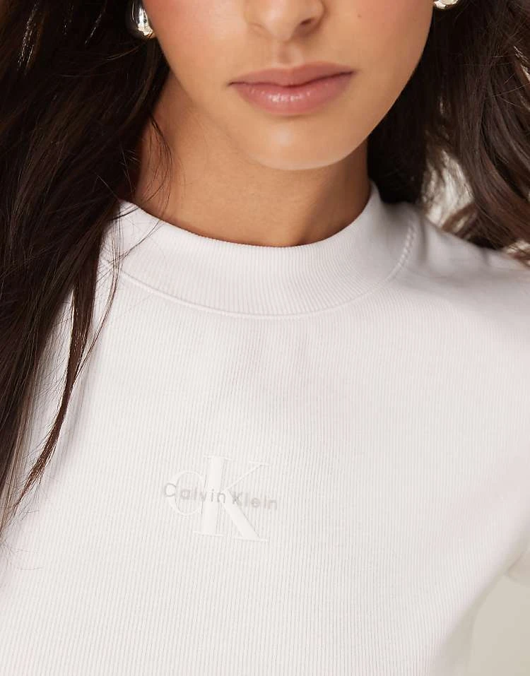 Calvin Klein Jeans Monologo Baby Tee In White For Women Brilliant White