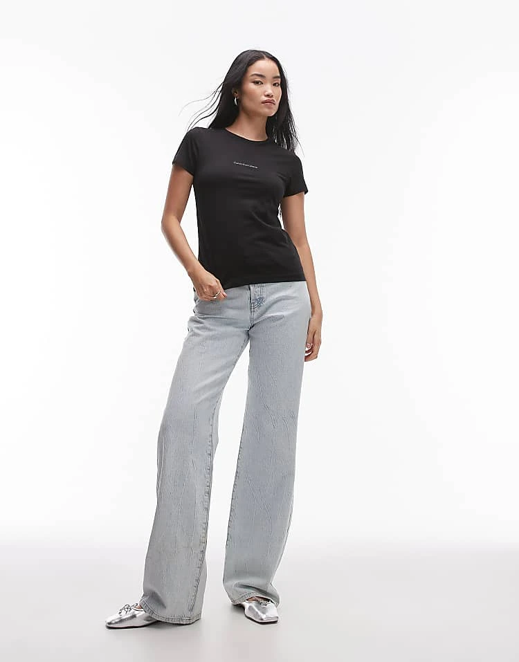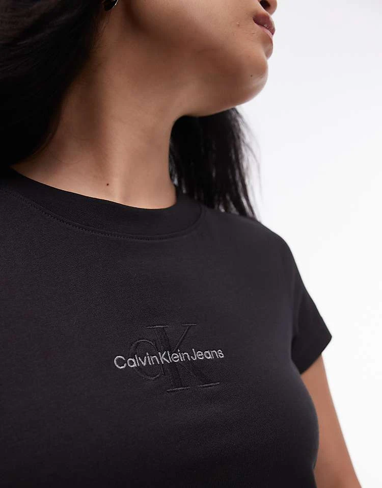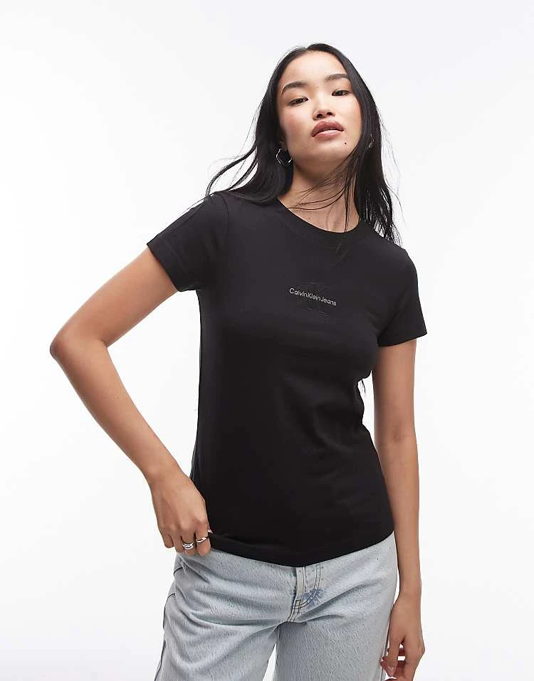 Calvin Klein Jeans Monologo Slim T-shirt In Black For Women Ck Black