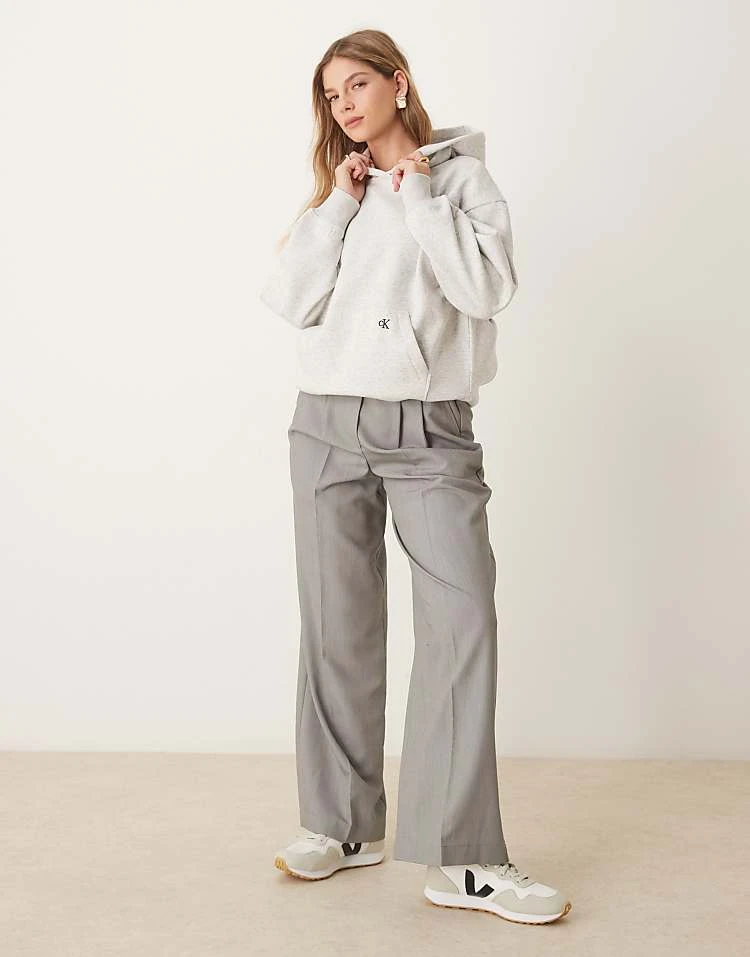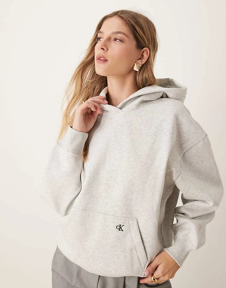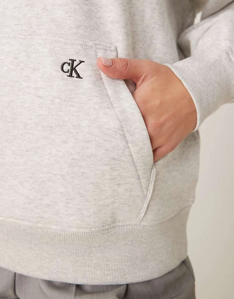 Calvin Klein Jeans Relaxed Back Print Hoodie In Grey For Women Ivory Grey Heather