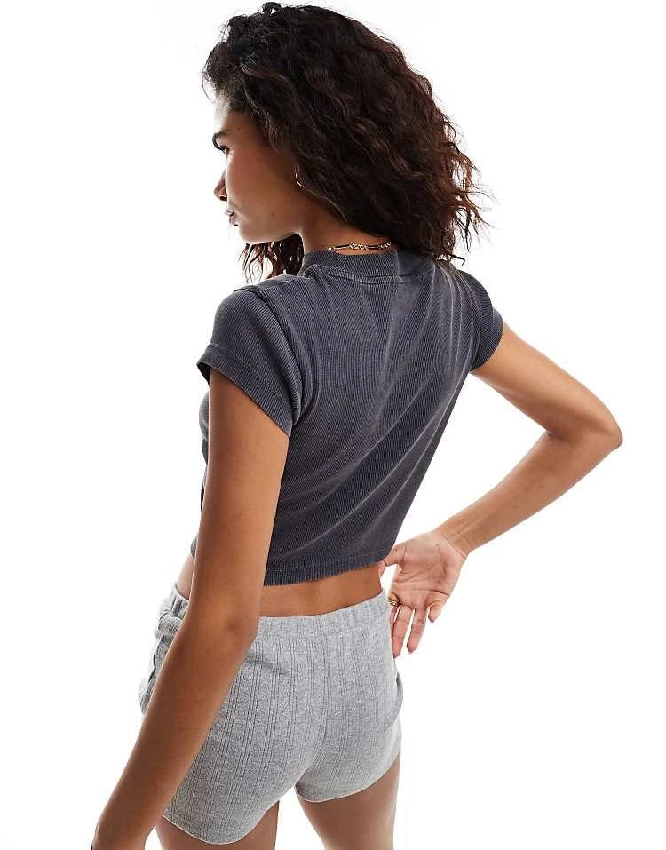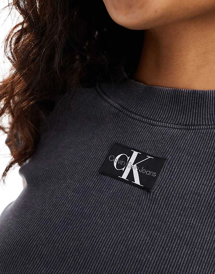 Calvin Klein Jeans Rib Baby Tee In Washed Black For Women