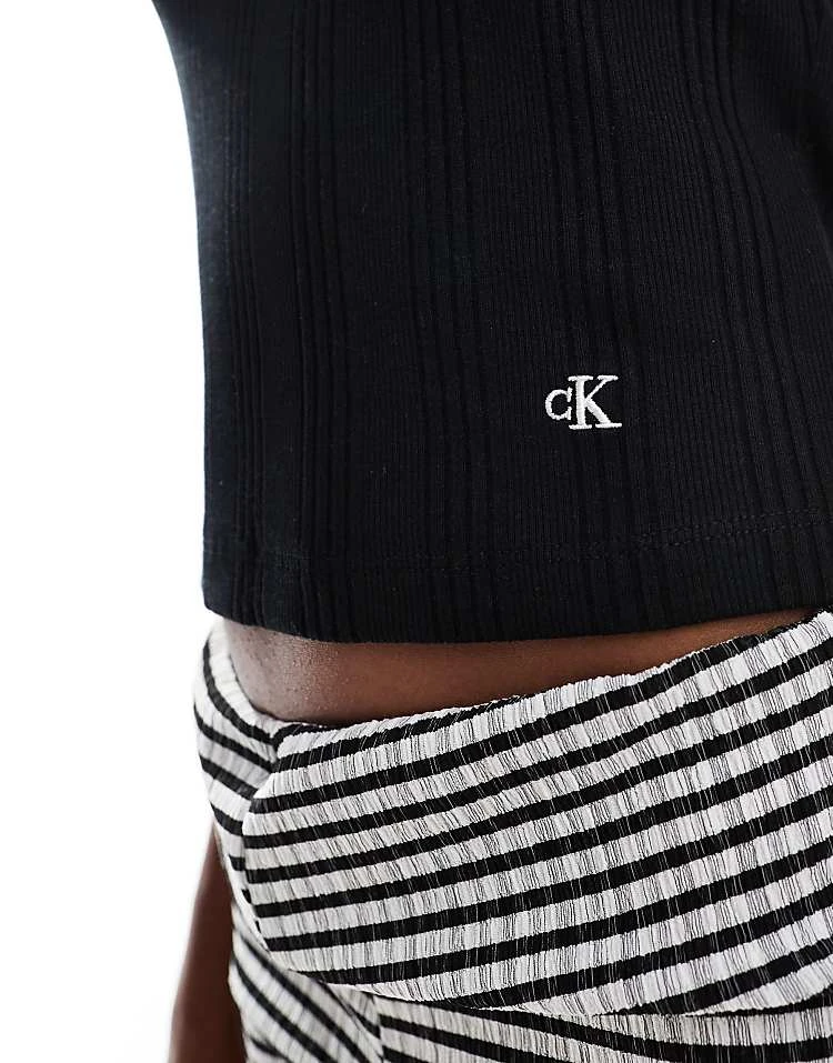 Calvin Klein Jeans Rib Half Zip T-shirt In Black For Women Ck Black