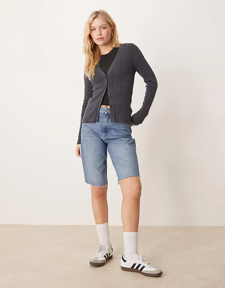 Calvin Klein Jeans Ribbed Cardigan In Charcoal For Women
