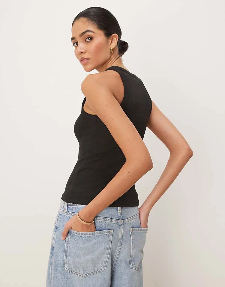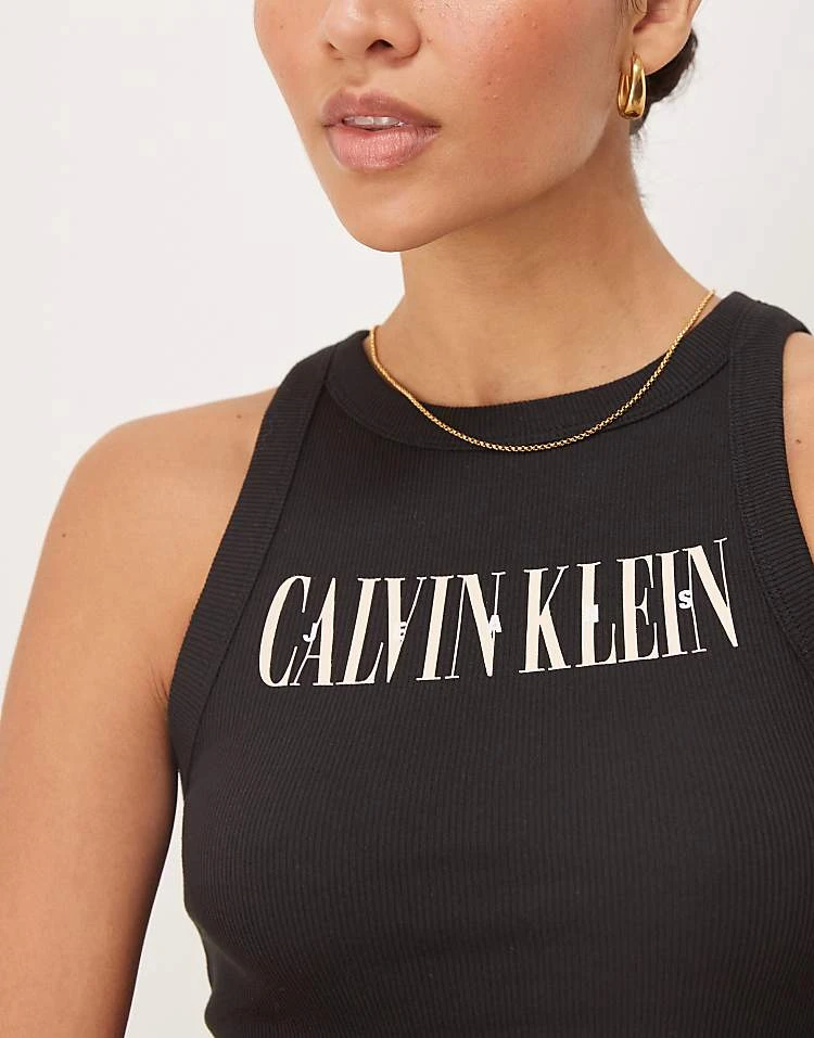 Calvin Klein Jeans Script Logo Rib Tank Top In Black For Women Ck Black