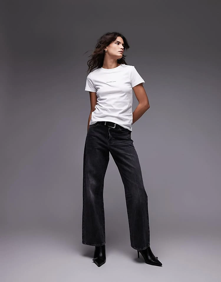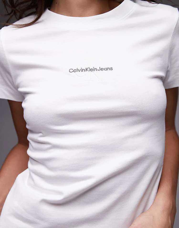 Calvin Klein Jeans Slim Monogram T-shirt In Bright White For Women