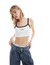 Calvin Klein Jeans Tie Detail Crop Top In White For Women Denim Light