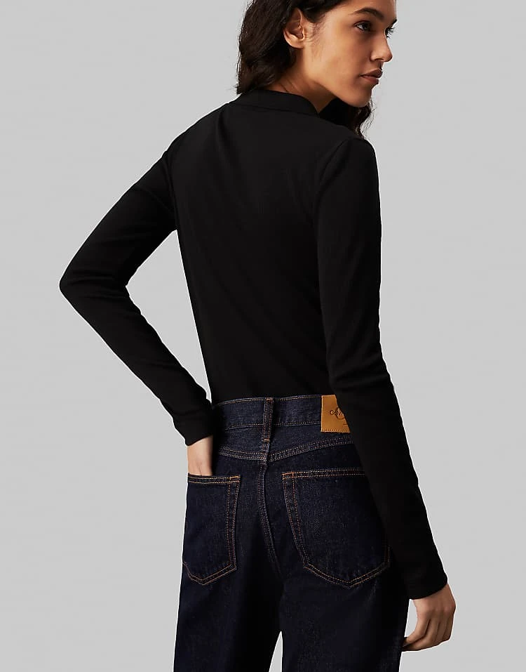 Calvin Klein Jeans Woven Label Bodysuit In Black For Women Ck Black