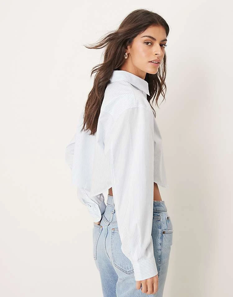 Calvin Klein Jeans Woven Label Cropped Shirt In Blue Stripe For Women Bright White / Blu