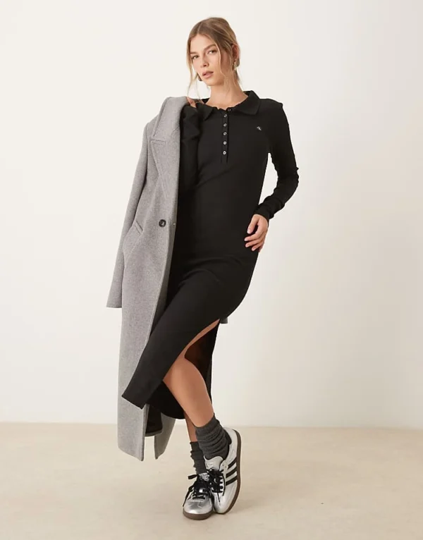 Calvin Klein Jeans Woven Label Rib Maxi Dress In Black For Women Ck Black
