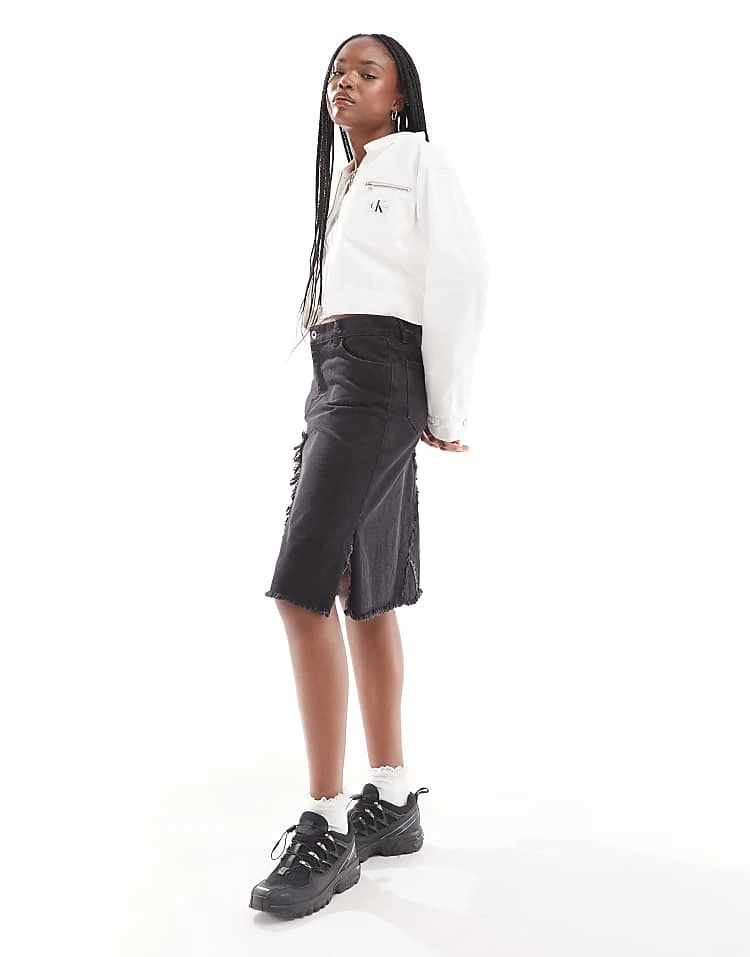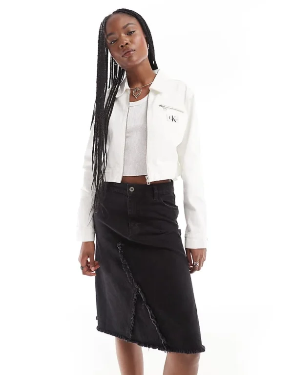 Calvin Klein Jeans Zipped Denim Jacket In White Wash For Women
