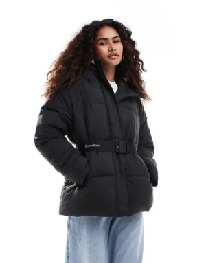 Calvin Klein Jeans Logo Belt Puffer Jacket In Black For Women Ck Black