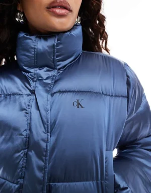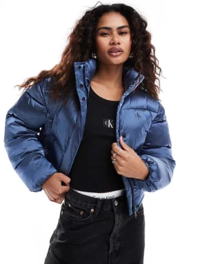 Calvin Klein Jeans Cropped Shiny Puffer Jacket In Light Blue For Women China Blue