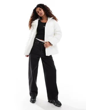 Calvin Klein Jeans Logo Belt Puffer Jacket In White For Women Ivory