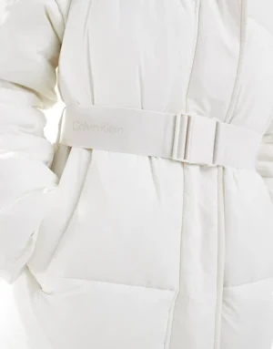 Calvin Klein Jeans Belted Long Puffer Jacket In White For Women Ivory