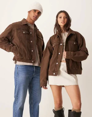 Calvin Klein Jeans Oversized Denim Jacket In Dark Brown – ASOS Exclusive For Unisex Denim Dark