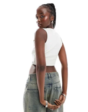 Calvin Klein Jeans Seaming Rib Tank Top In White For Women Icicle