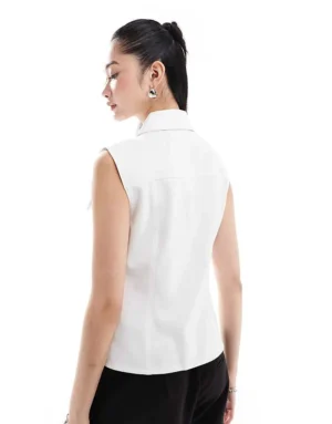 Calvin Klein Jeans Sheen Milano Sleeveless Shirt In White For Women Bright White