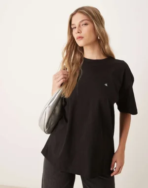 Calvin Klein Jeans Script Logo Oversized T-shirt In Black For Women Ck Black