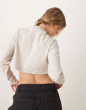 Calvin Klein Jeans Script Logo Crop Long Sleeve T-shirt In Beige For Women Moonbeam