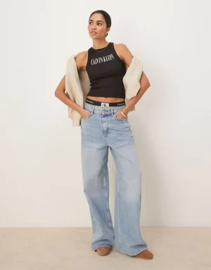 Calvin Klein Jeans Script Logo Rib Tank Top In Black For Women Ck Black