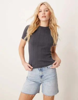Calvin Klein Jeans Ribbed T-shirt In Dark Grey For Women Ebony