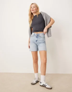 Calvin Klein Jeans Seersucker Shorts In White For Women Icicle