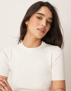 Calvin Klein Jeans Ribbed T-shirt In Ecru For Women Tofu