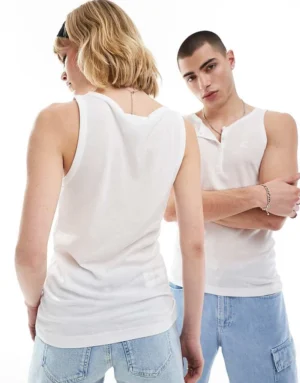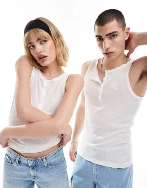 Calvin Klein Jeans Slim Sheer Rib Henley Tank In White – ASOS Exclusive For Unisex
