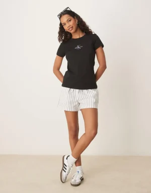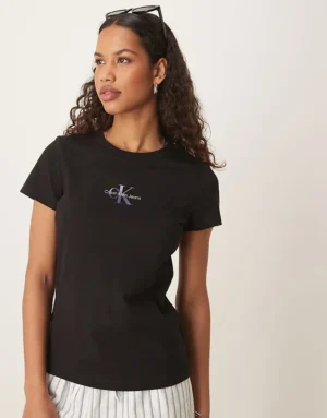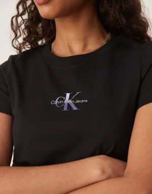Calvin Klein Jeans Slim Monogram T-shirt In Ck Black For Women