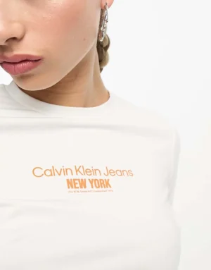 Calvin Klein Jeans Two Tone Monogram Crop Crew Neck Sweater In Black For Women Cream