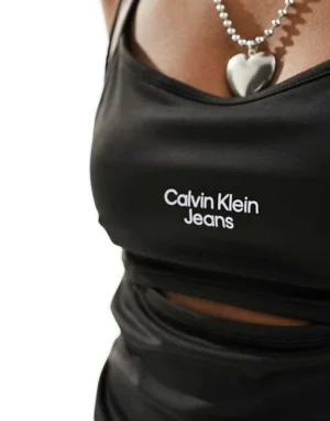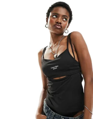 Calvin Klein Jeans Strappy Top In Black For Women Ck Black