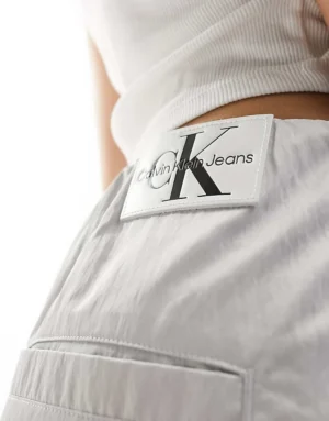 Calvin Klein Jeans Soft Crinkle Parachute Trouser In White For Women Lunar Rock