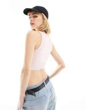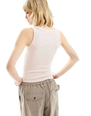 Calvin Klein Jeans Woven Label Rib Tank Top In Pink For Women Sepia Rose