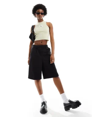 Calvin Klein Jeans Woven Label Knitted Tank In Beige For Women Green Haze