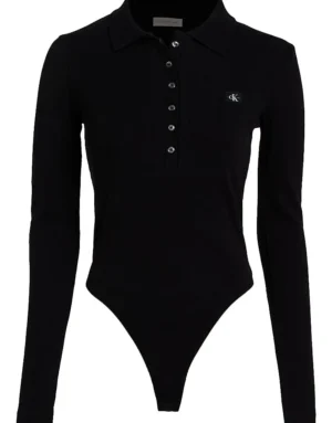 Calvin Klein Jeans Woven Label Bodysuit In Black For Women Ck Black