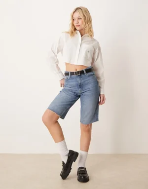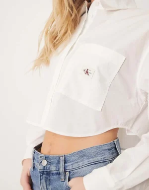 Calvin Klein Jeans Woven Label Cropped Shirt In White For Women Bright White